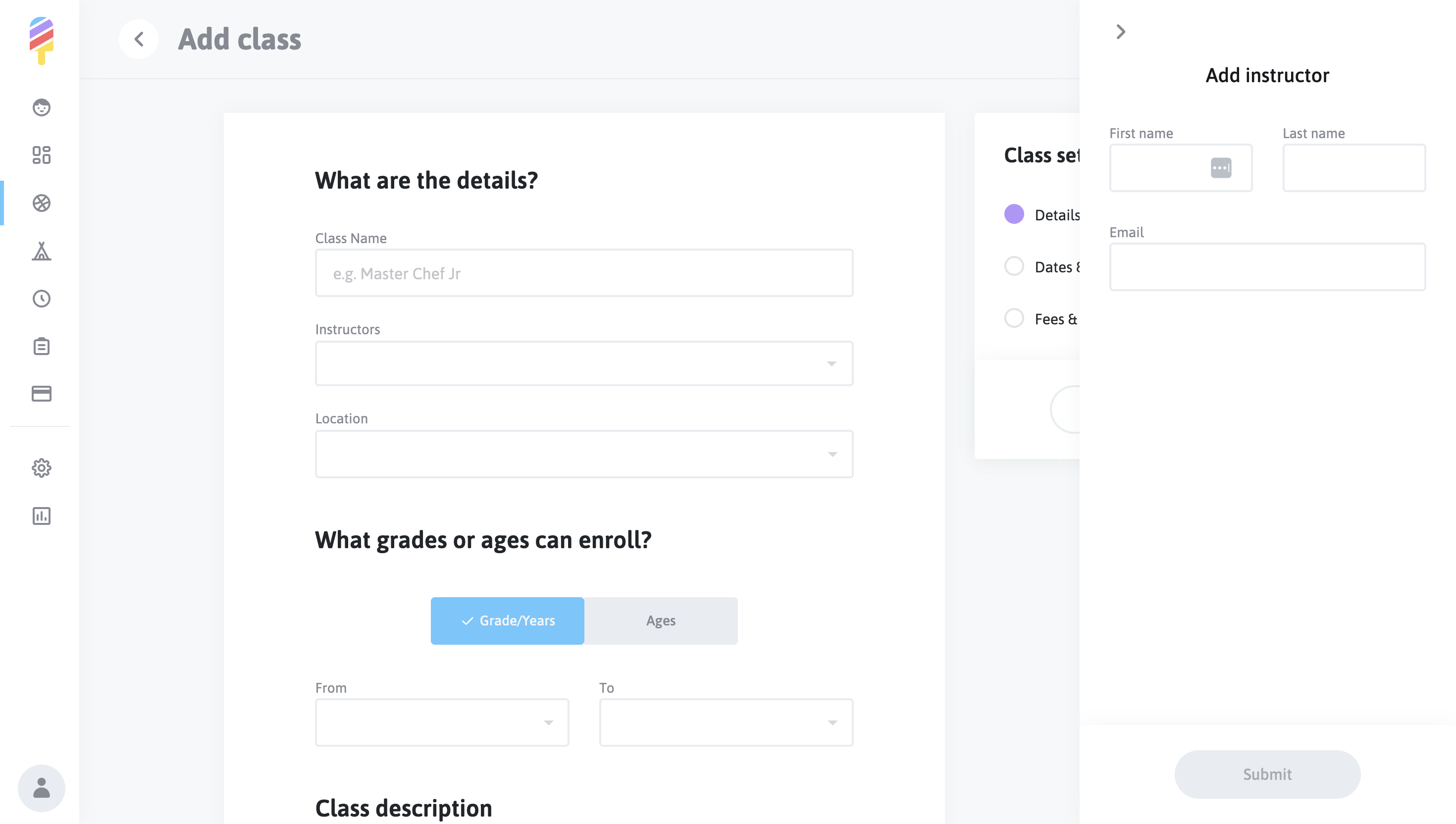As you're setting up your activities, you'll want to try and add your Instructors when you create the class/camp/aftercare session, if possible. This is very easy to do, and will take less than a minute.