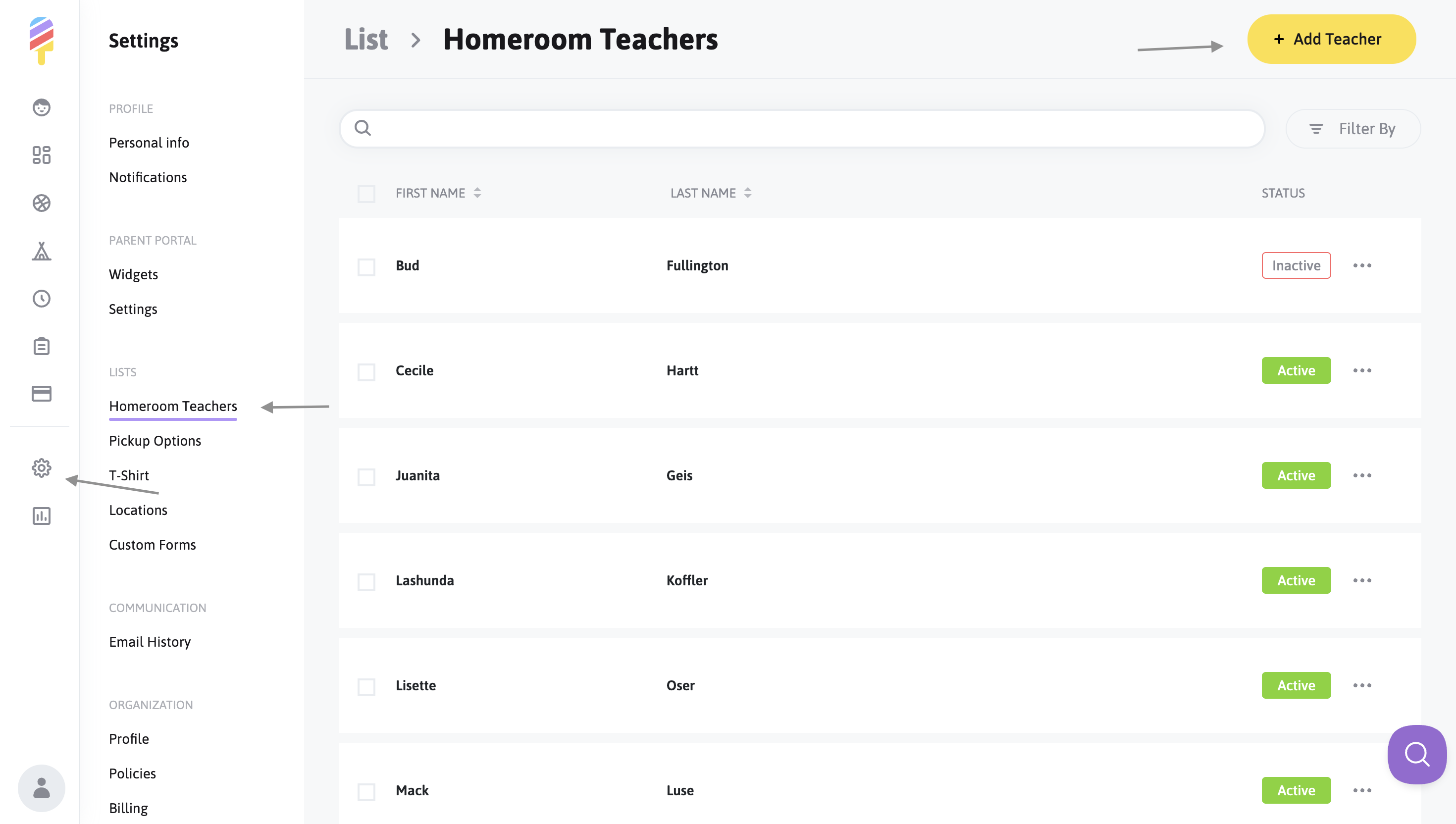 Here, you can add homeroom teachers, edit existing teachers, or delete teachers: