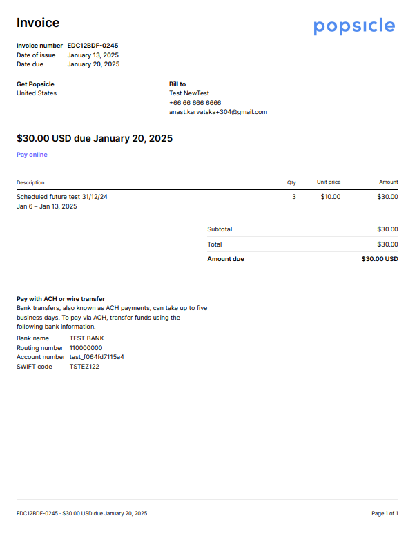 - The invoice status will change from 'Open', 'Past Due', or 'Uncollectible' to 'Paid'.