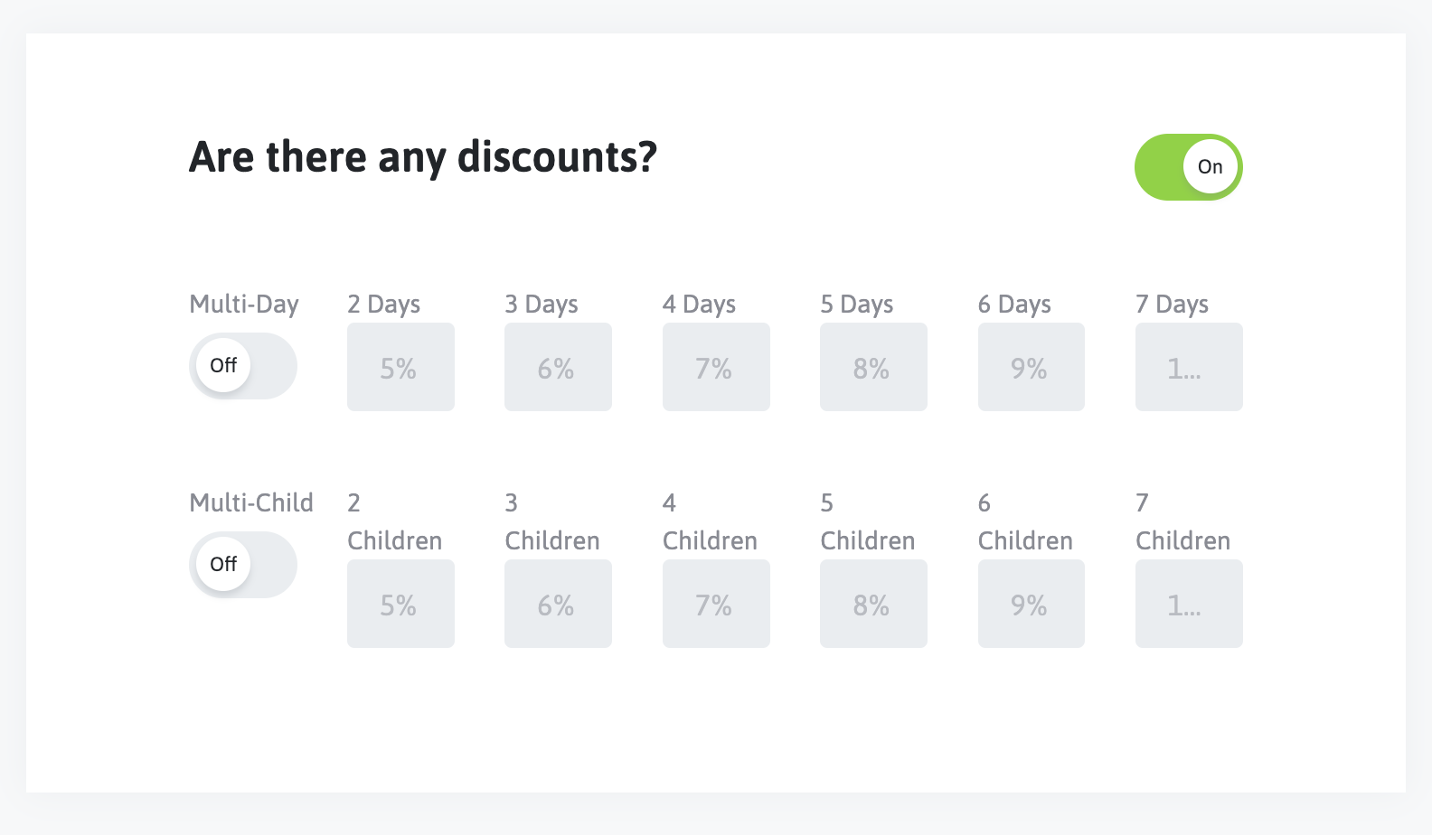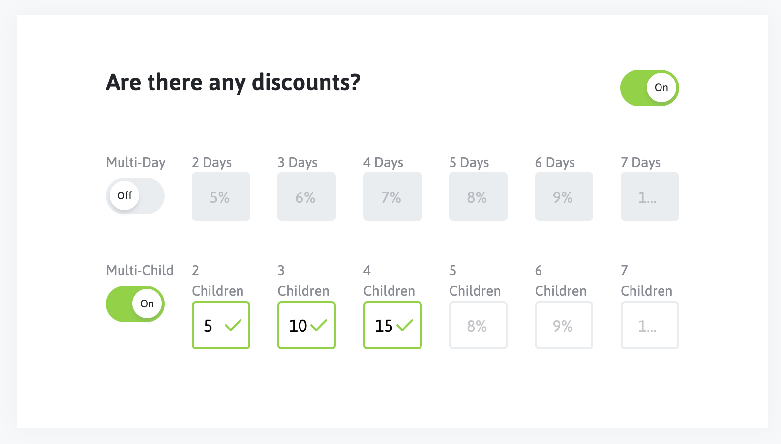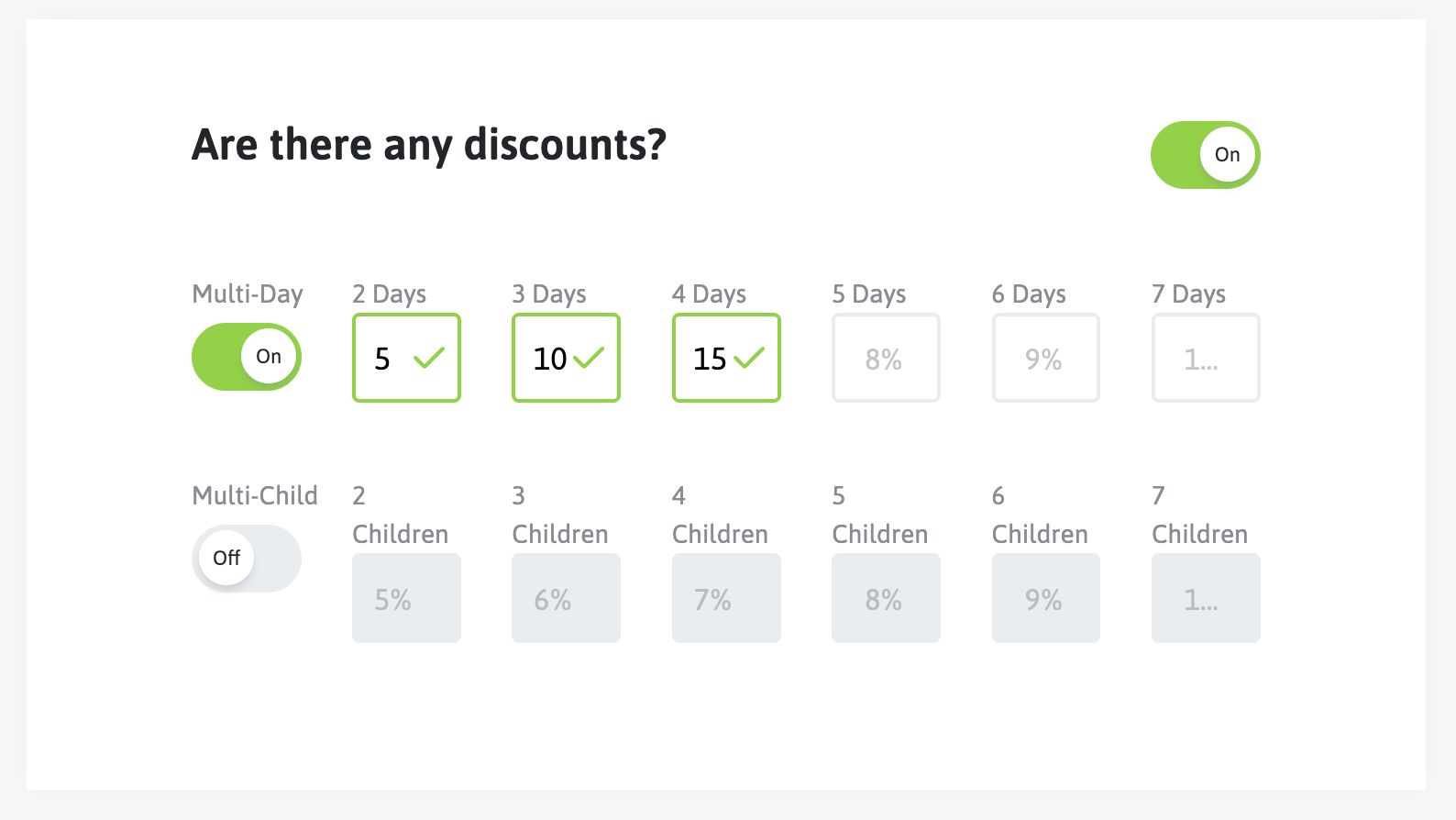 Note: For Fixed Rate metered activities, only the Multi-Child discount is available.