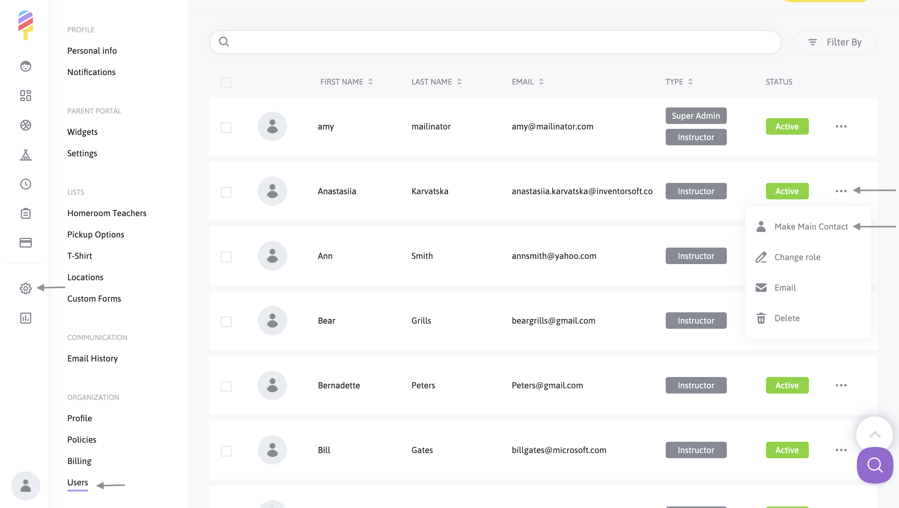 You'll want to find the new user that will be the new main contact and click on the three dots to the far right of that user's name. Click "Make Main Contact," and you'll be prompted to confirm the change. After confirming the change, your new main contact will be saved!