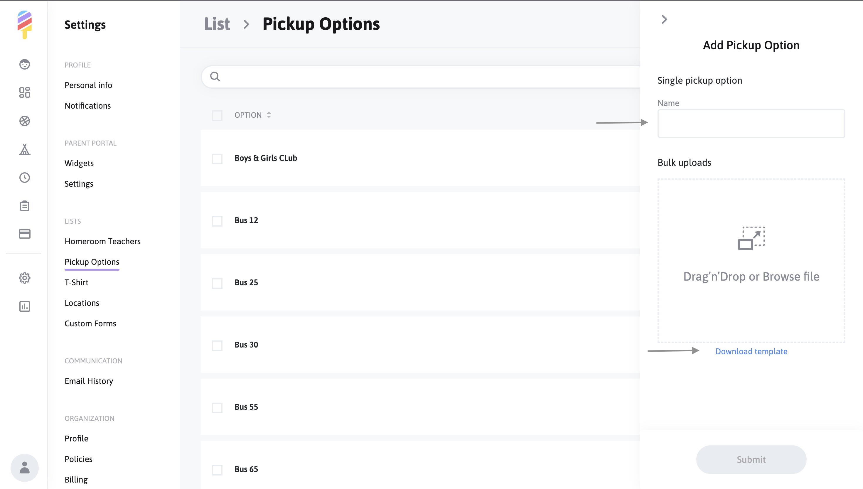 Running an after school program or activity can definitely be challenging at times--but with Popsicle, you can easily keep track of all necessary information. Adding Pickup options to your account will let any parents or families registering their children for activities choose the method their child will be using to get home at the end of the day.
